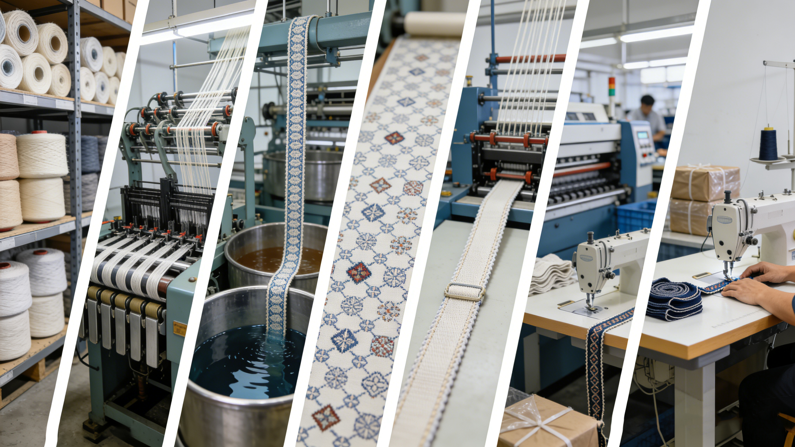 Original Webbing features a comprehensive industrial chain from raw yarn to end products, integrating weaving, dyeing, printing, finishing, sewing and assembly.